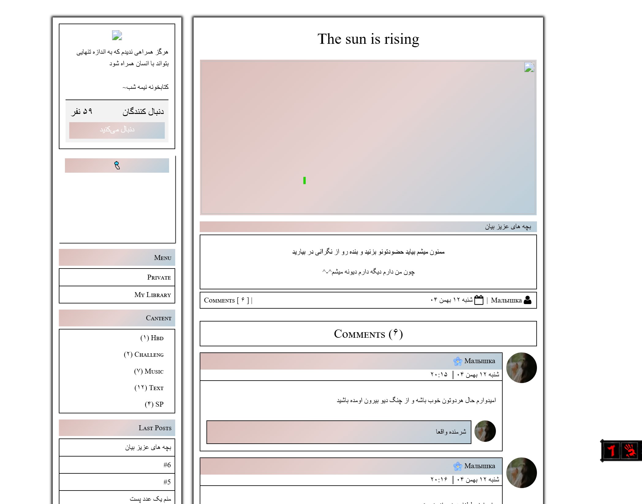 منم قالب زدنو یادم رفته بود بالکل. رفتم یکم با css بازی بازی کردم، یادم اومد و زیباترین قالب بیان رو زدم (اگه تعریف از خود نباشه :دی)